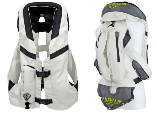 智能型氣囊衣,其包含:防沖擊服本體、三軸陀螺儀傳感器、主控制電路板、鋰電池、充氣裝置、氣瓶以及氣囊。三軸陀螺儀傳感器裝配于防沖擊服本體上,用于采集人體運動姿態數據信息;主控制電路板電性連接三軸陀螺儀傳感器,用于接收并檢測人體運動姿態數據信息;充氣裝置電性連接主控制電路板;氣瓶裝配于防沖擊服本體上;以及氣囊裝配于防沖擊服本體內,且氣囊為螺旋狀氣囊;當主控制電路板檢測到人體運動姿態數據信息達到第一預設值時,則主控制電路板觸發充氣裝置開啟氣瓶以對氣囊充氣。