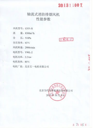天津消防研究所提供的標準防火風機和檢測報告